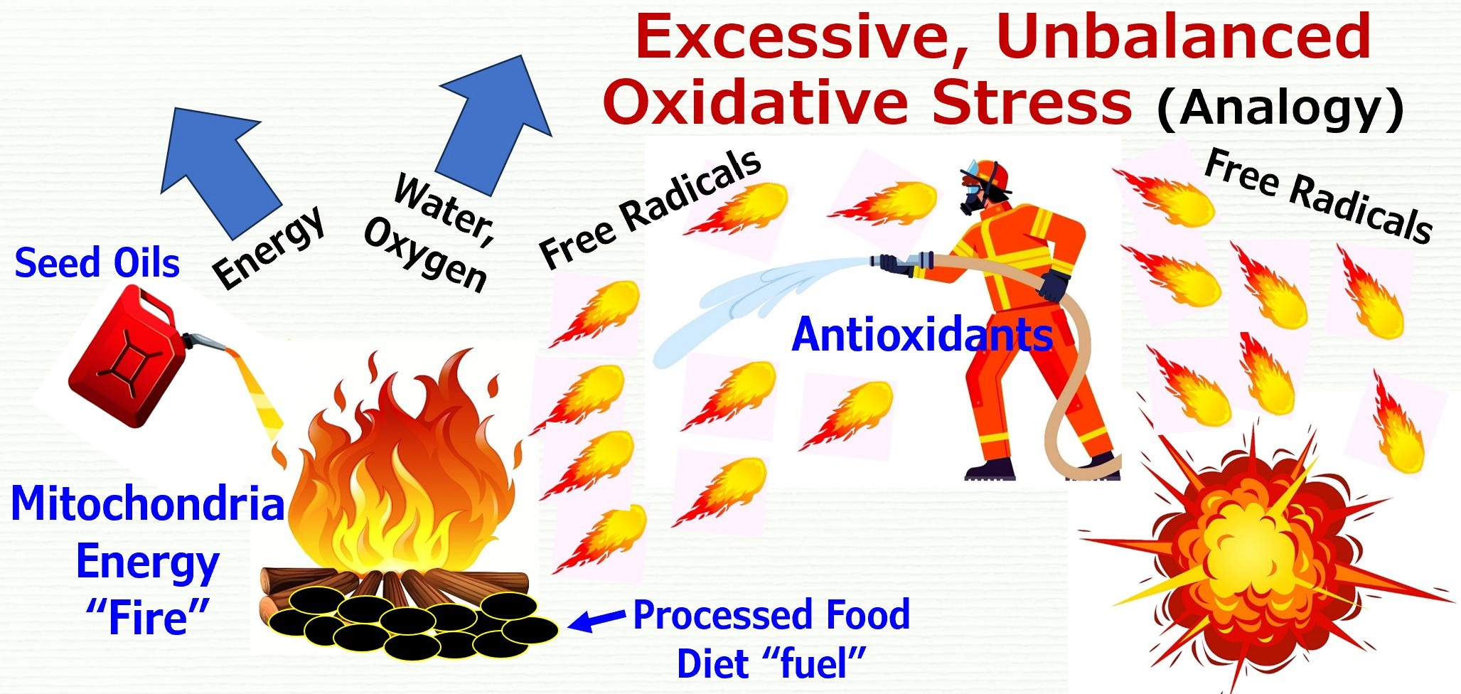 What is this poison? Highly refined, industrially produced seed oils, also called “vegetable oils,” even though no vegetables are involved. Part 2 of this article will focus on how seed oils became so prevalent in our food supply and what you can do about it. But first, we need to understand why seed oils and some other foods are responsible for causing oxidative stress and how they damage your body.