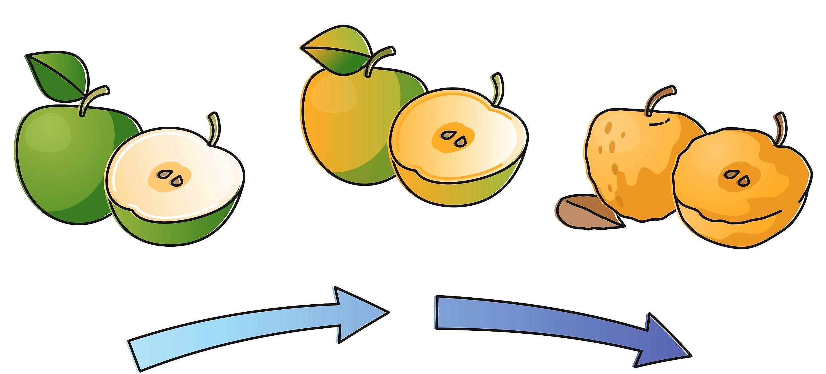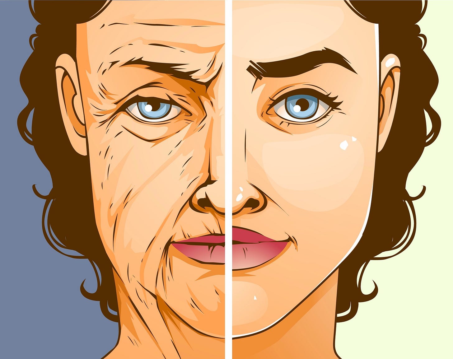 One way to talk about oxidation is with the picture above. If you have ever let a cut apple or banana sit on the counter too long, you know it starts looking like the one on the right. It might remind you of the left half of the face image above—with good reason. Both are products of oxidation. Another analogy is rusting; in a way, your body is “rusting” as you age.