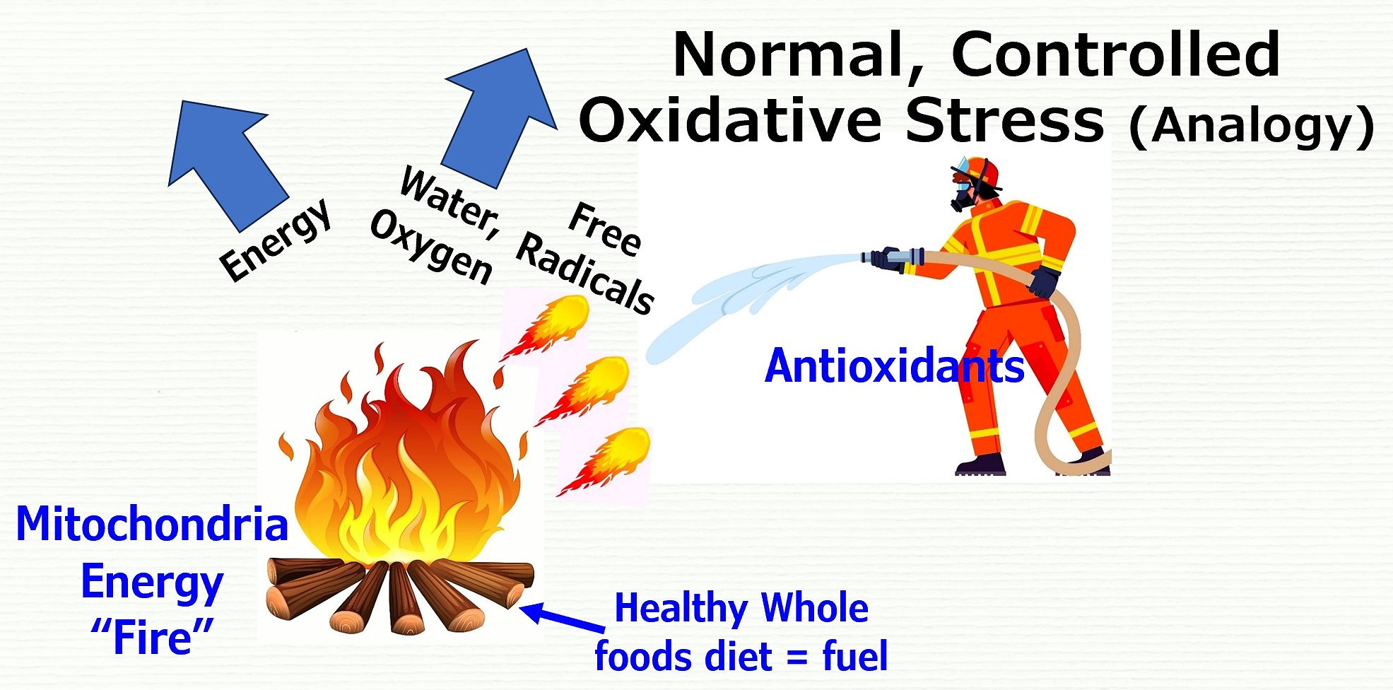 But to better capture the dangers of excessive oxidative stress, I will use a campfire analogy to describe what happens in your body. This seems appropriate because combustion is one of the most familiar forms of oxidation.